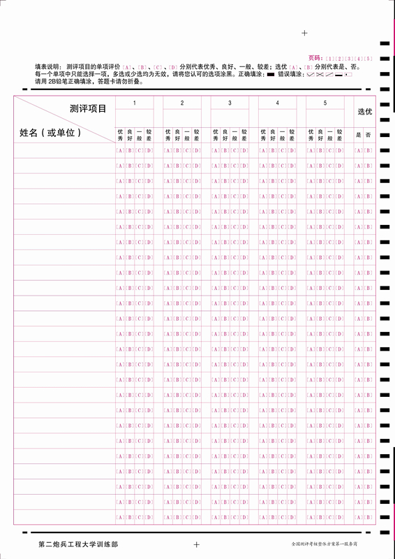 案例:第二炮兵工程大學(xué)現(xiàn)改名為:中國人民解放軍火箭軍工程大學(xué),位于陜西省省會西安市,是中國人民解放軍重點(diǎn)院校,訓(xùn)練部需要的答題卡并不是一般考試的答題卡,而是測評項目的答題卡。